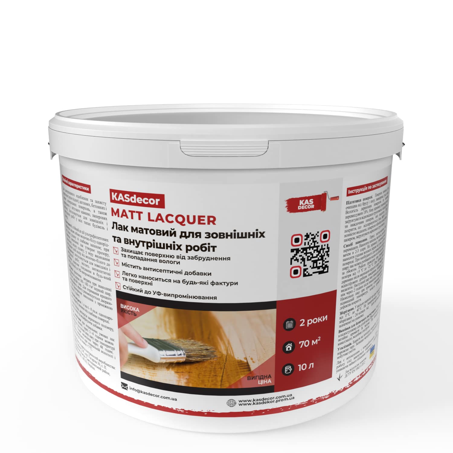 Спосіб нанесення: Наноситься суцільним шаром, пензликом, валиком, фарборозпилювачем, тампоном. Перед використанням лак ретельно перемішати. Розведення водою допустимо до 5%. Рекомендована температура нанесення від + 5 ° до + 28 °